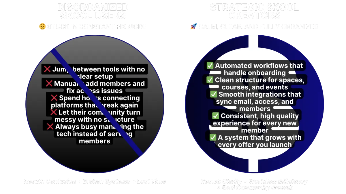 They ignore the practical automations that matter most, missing the chance to let Skool handle onboarding, access, and communication without manual work.