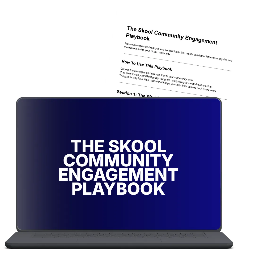 BONUS 4: The Skool Community Engagement Playbook - Daily and weekly engagement prompts, DM templates, and strategies that keep your community active and growing.