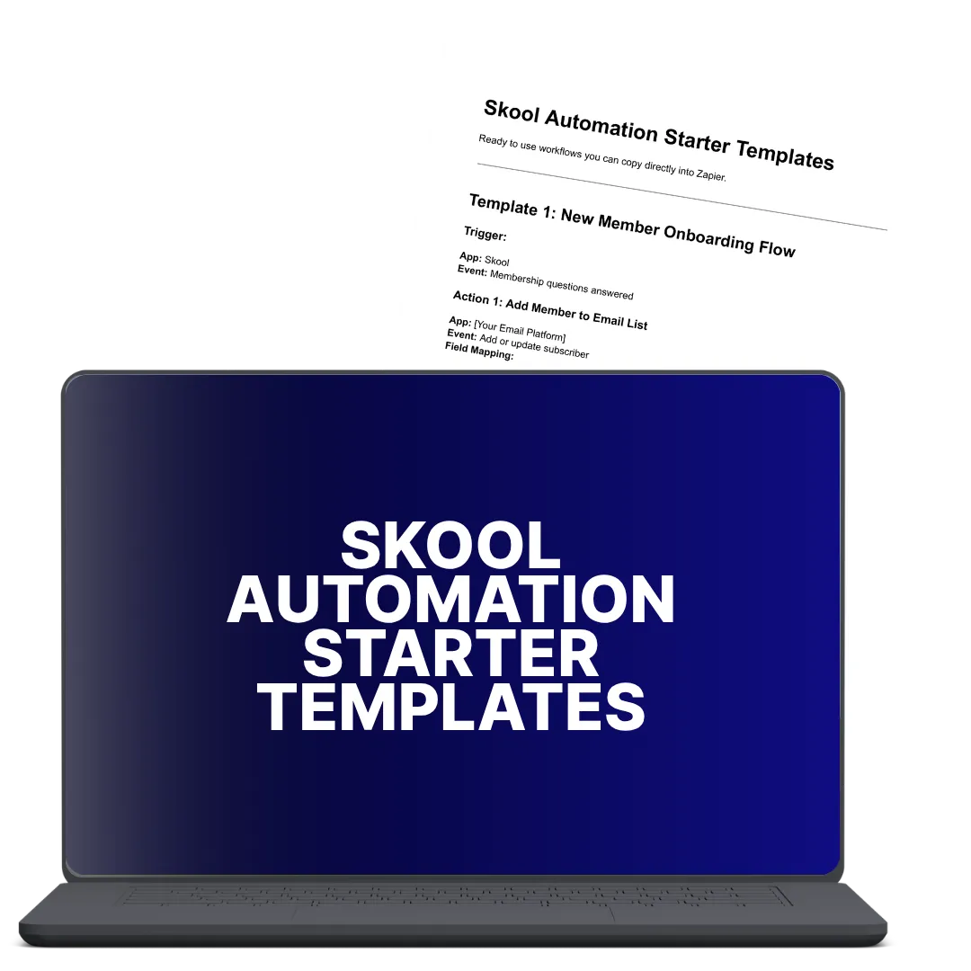 BONUS 1: Skool Automation Starter Templates - Plug and play Zapier workflows that instantly connect Skool with your email platform, support desk, and onboarding process.