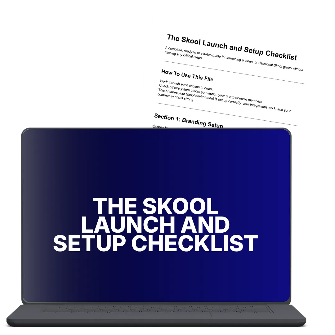 BONUS 2: The Skool Launch and Setup Checklist - A complete checklist that walks you through every essential step to launch a clean, professional Skool group.